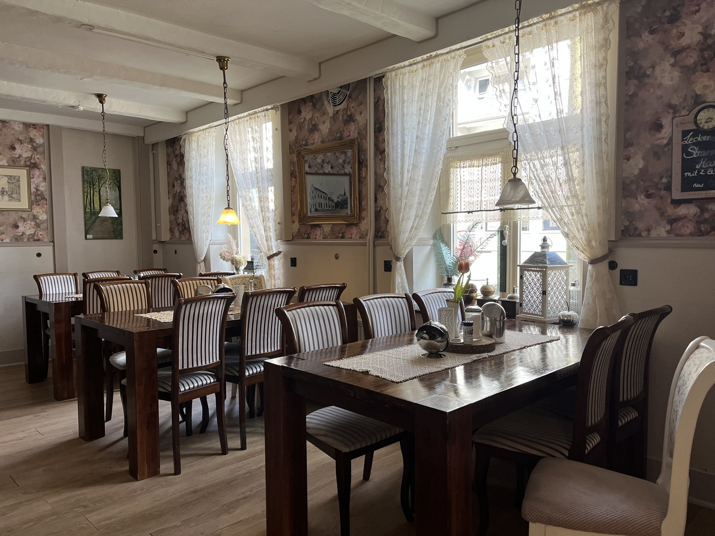 Das Alt Hiesfelder Kaffeestübchen und Kramladen liegt im Dinslakener Stadtteil Hiesfeld in einem denkmalgeschützten Fachwerkhaus. Das Gebäude, dessen Geschichte bis 1670 zurückreicht, erhielt im 20. Jahrhundert eine Jugendstilfassade. Das Café bietet ein Frühstücksbuffet sowie hausgemachte Torten und Kuchen. Es ist barrierefrei und für Veranstaltungen geeignet.