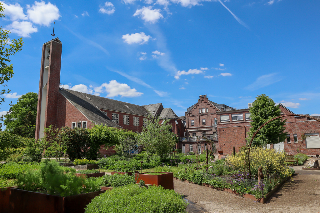 Die Anlage des Klosters St. Bernardin, welches heute als Wohnkomplex für Menschen mit Behinderung dient, beherbergt eine Garten- und Parklandschaft von besonderem Charakter. Im Rahmen des vormaligen Kooperationsprojektes „Umweltbildung für alle“ entstand hier ein Schaubauerngarten. Dieser Bereich fördert den Erhalt alter Gemüse- und Kräutersorten und steht der Öffentlichkeit zur Nutzung offen. Die Pflege des Gartens obliegt dem NABU Kreisverband Kleve e.V. Innerhalb der Anlage finden sich zudem eine Kneipp-Anlage sowie eine Spielfläche. Die gestalterische Vielfalt umfasst darüber hinaus zahlreiche florale Arrangements, welche die Parklandschaft prägen.