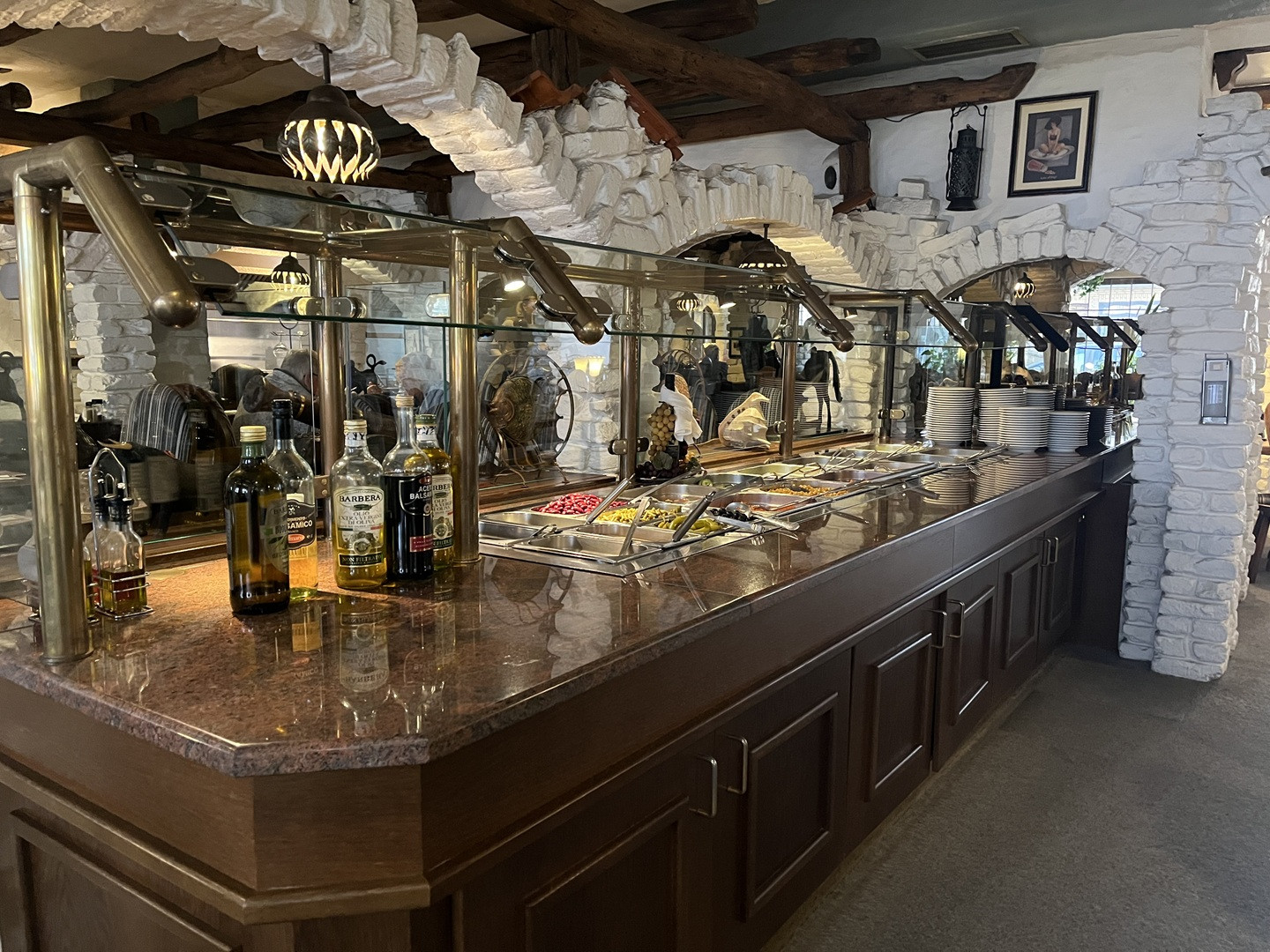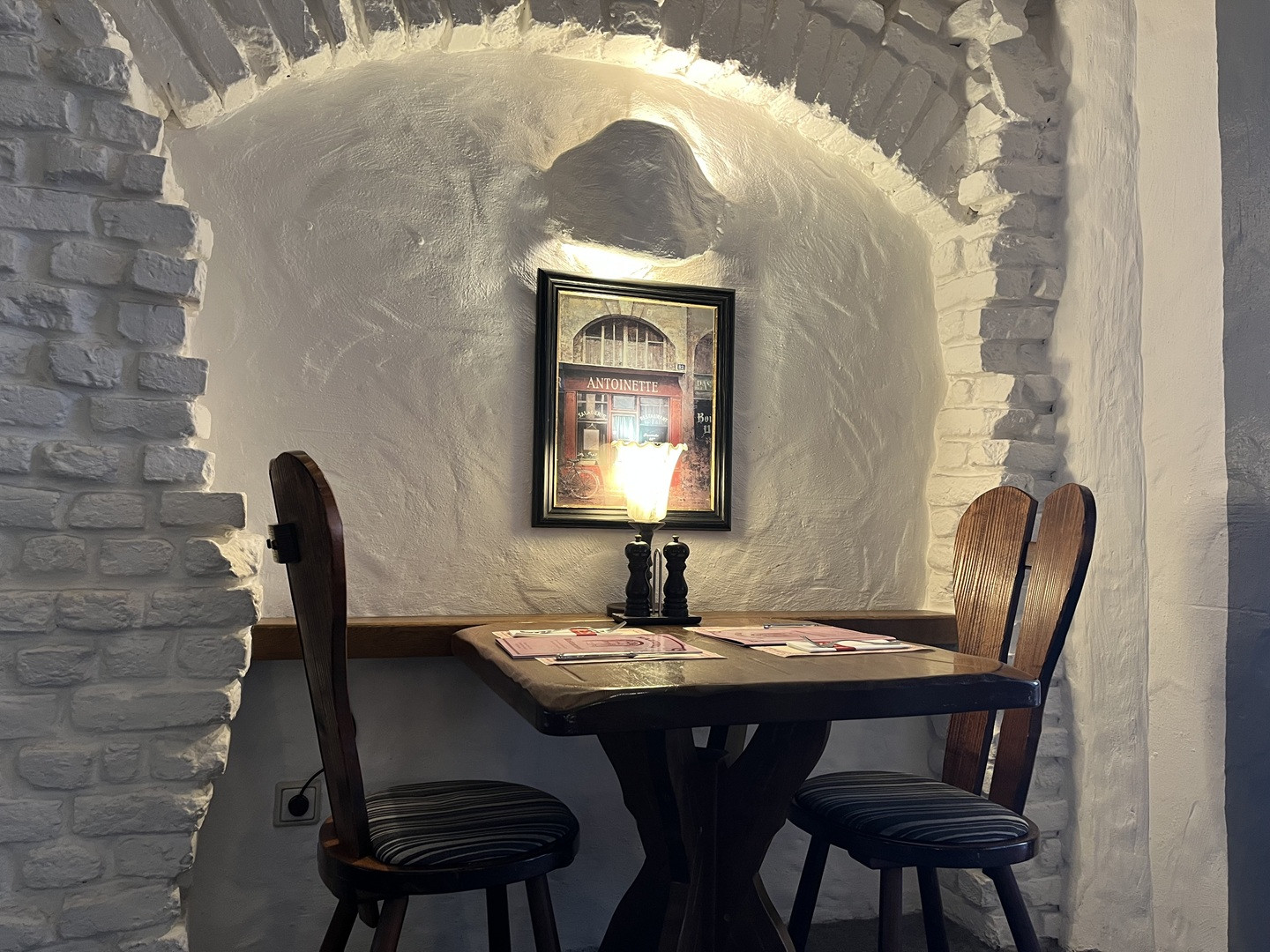 Das Restaurant Hazienda präsentiert eine umfangreiche Speisekarte, die Steaks, Grillgerichte und internationale Küche umfasst. Rumpsteak, gemischter Grill, Schnitzel und Fischspezialitäten sind ebenso vertreten wie frische Salate und diverse Vorspeisen. Die Terrasse bietet im Sommer zusätzlichen Raum für Gäste.