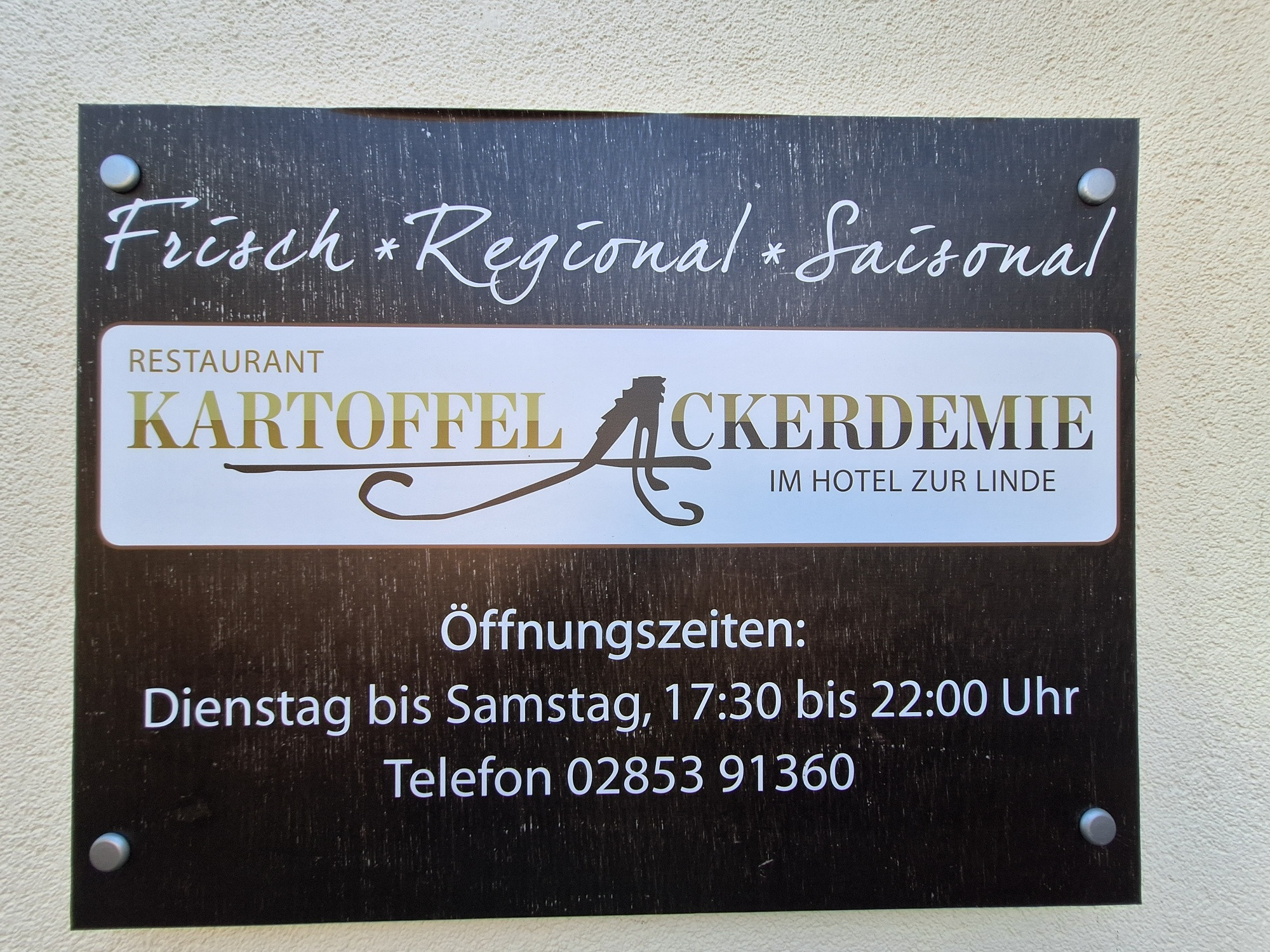 Das Restaurant Kartoffel-Ackerdemie im Hotel Zur Linde befindet sich im Schermbecker Ortskern. Die Küche verbindet traditionelle Gerichte mit modernen Akzenten, inspiriert von mediterranen Einflüssen. An warmen Tagen bietet die Terrasse eine angenehme Möglichkeit, die Speisen im Freien zu genießen.