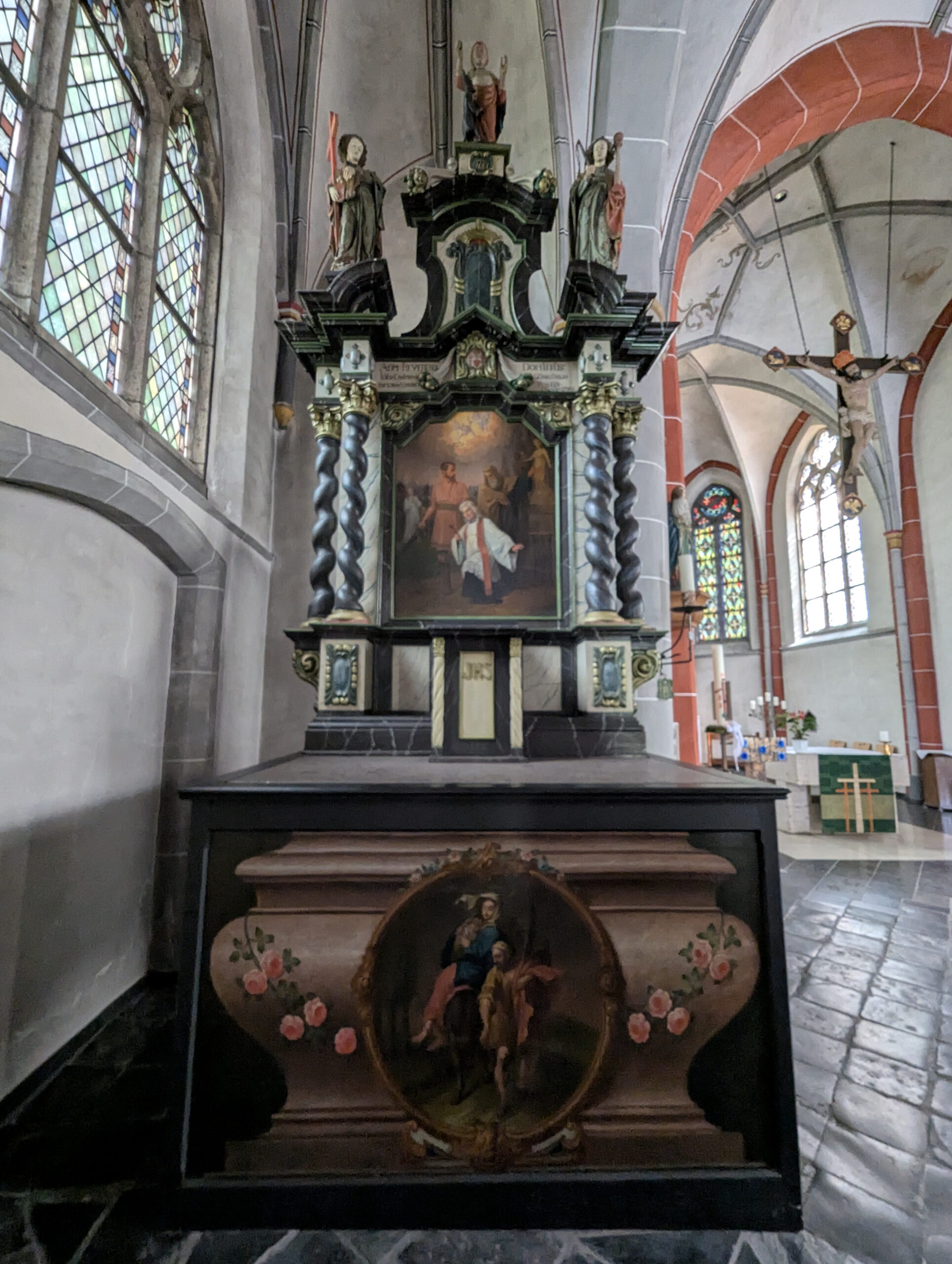 Die St.-Gerebernus-Kapelle in Sonsbeck ist ein bedeutendes Zeugnis der regionalen Geschichte. Ihre Ursprünge lassen sich bis zu einer Hofkapelle in der Keimzelle des „alten Sonsbeck“ zurückverfolgen, einer Siedlung, die bis in die Römerzeit reicht. Die römische Heerstraße von Xanten nach Venlo führte einst direkt an diesem Ort vorbei, und ein noch erhaltener Römerturm zeugt von der historischen Bedeutung dieser Gegend. In der Stauferzeit errichteten die Kölner Erzbischöfe hier einen befestigten Hof, und um das Jahr 900 entstand die erste Kapelle, die dem Heiligen Gerebernus geweiht wurde. Dieser soll um das Jahr 600 gemeinsam mit der Heiligen Dymphna den Märtyrertod erlitten haben, eine Geschichte, die bis heute viele Menschen bewegt. Ein besonderes Merkmal der Kapelle ist der Kriechaltar, eine von nur zwei erhaltenen Anlagen dieser Art in Deutschland. Dieses seltene Ritual, bei dem Besucher:innen unter dem Altar hindurchkriechen können, symbolisiert Demut und Neubeginn und stellt eine einzigartige Erfahrung für Interessierte sakraler Baukunst dar.